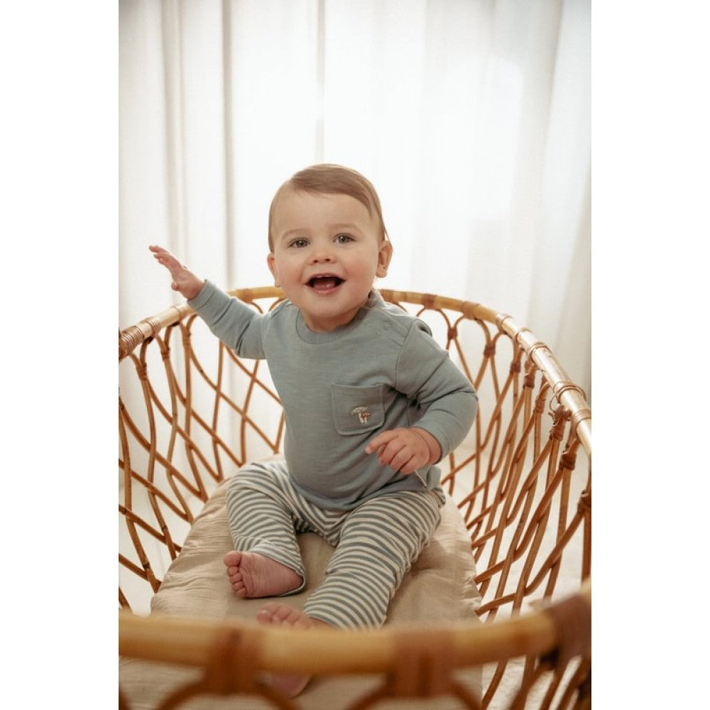 Бебешката блуза с дълъг ръкав и джобче Stone Blue е със страхотен дизайн. Материята от органичен памук, е направена с мисъл за комфорта на вашето бебе.