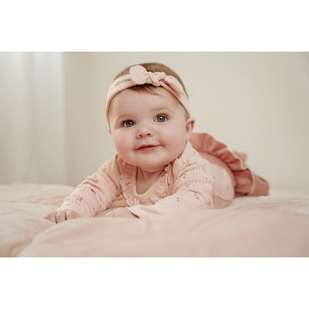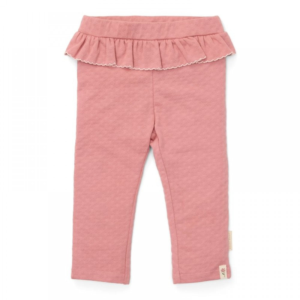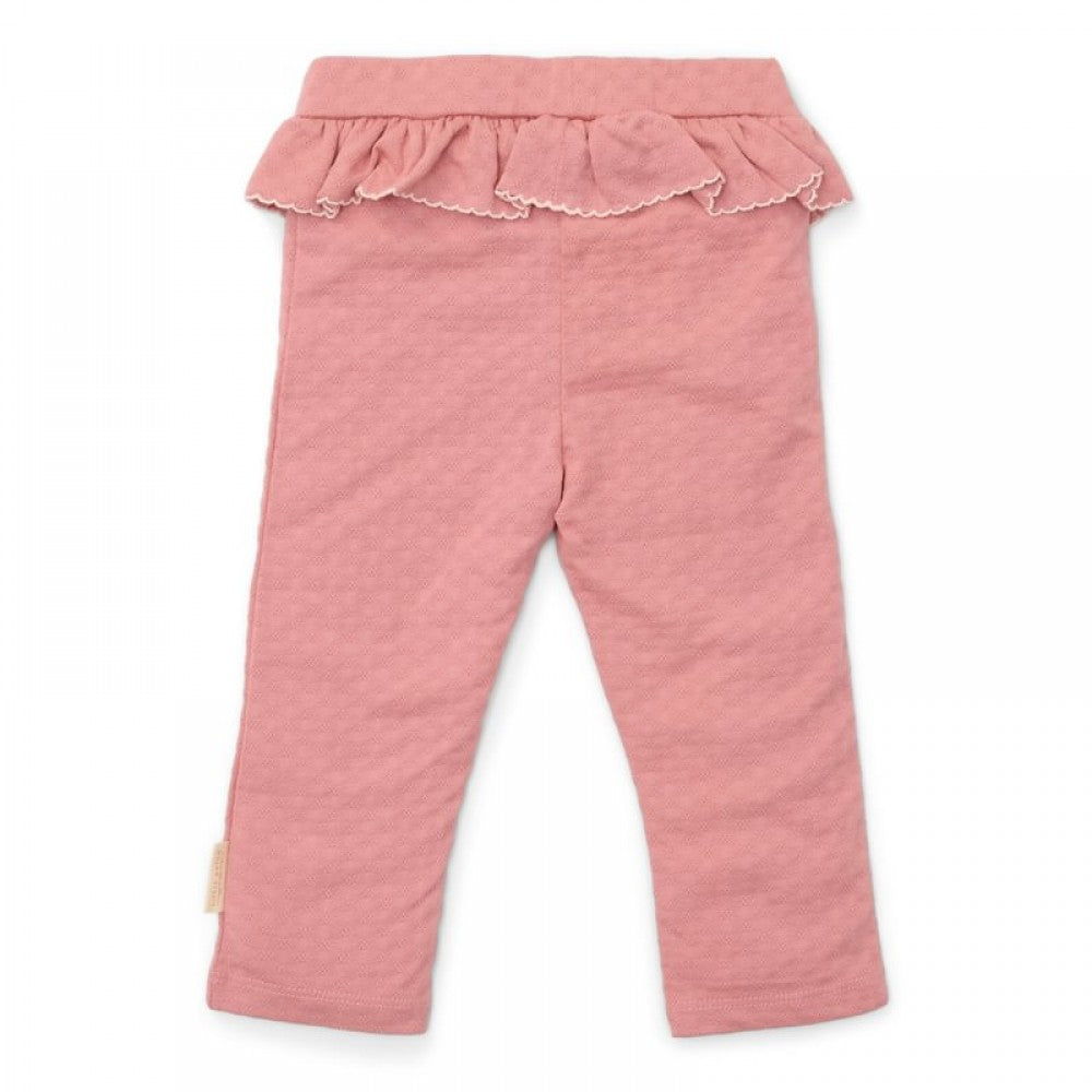 Прекрасният панталон с къдрички е изработен от мек органичен памук, който е много приятен за кожата. Благодарение на еластичната талия можете лесно да обличате и събличате.