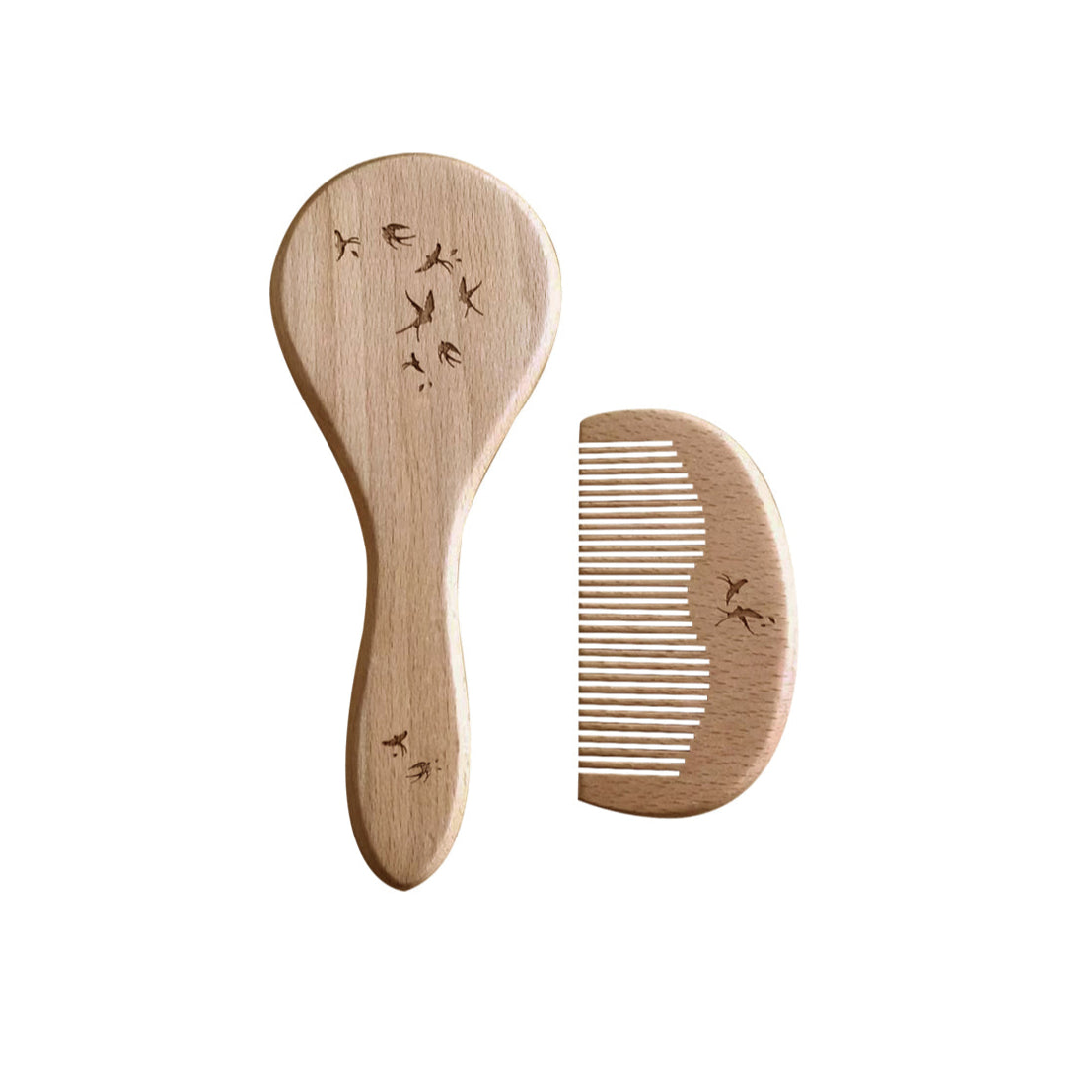 Материали: Изработен е от 100% натурален буков дървен материал и естествени косми от коза, които са изключително меки и нежни към чувствителния скалп на бебето.